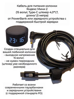 Кабель питания от пауэрбанка для колонок Яндекс Мини 2
