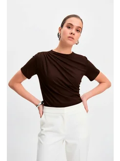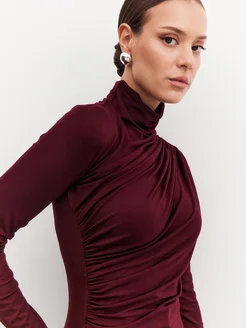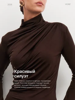 Лонгслив с драпировкой облегающий нарядный приталенный