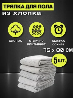 Тряпка для пола из хлопка белая 75*80см 5шт
