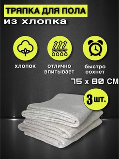 Тряпка для пола из хлопка белая 75*80см 3шт