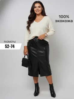 Юбка кожаная миди прямая с разрезом большие размеры