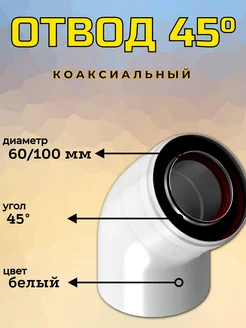 Отвод коаксиальный папа мама 45 град, 60 100 мм