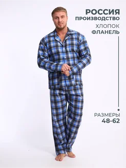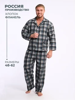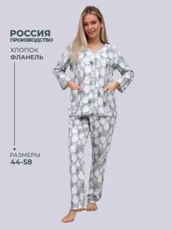 Пижама на пуговицах со штанами теплая фланелевая хлопок