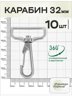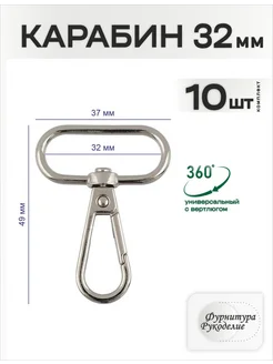 Карабин для сумок рукоделия 32 мм, серебро (10 шт)