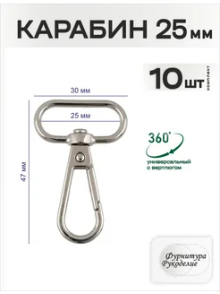 Карабин для сумок рукоделия 25 мм, серебро (10 шт)