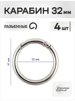 Карабин кольцо для сумок разъемный 32мм (4шт) серебро