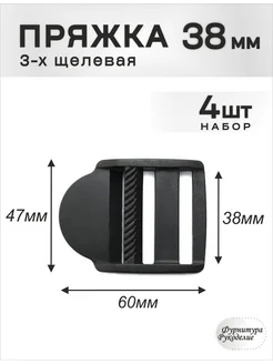 Пряжка-рамка трёхщелевая регулировочная 38 мм (4 шт)