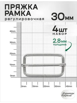 Пряжка регулятор-рамка для сумок ремней 30 мм никель (4 шт)