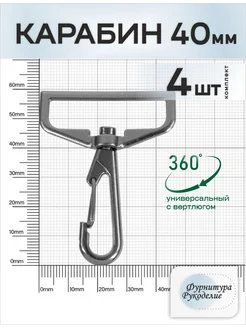 Карабин для сумок рукоделия 40мм черный никель (4 шт)