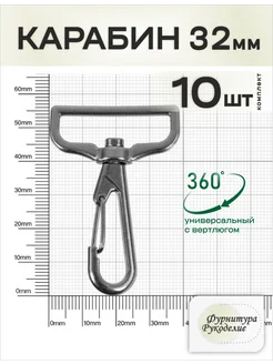 Карабин для сумок рукоделия 32мм графит (10 шт)