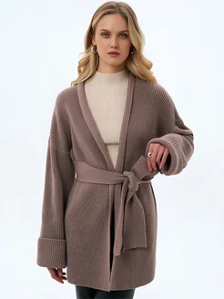 кардиган вязаный на поясе,кимоно теплое
