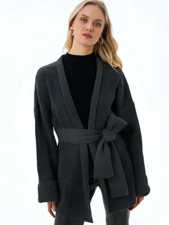 кардиган вязаный на поясе,оверсайз.теплое кимоно