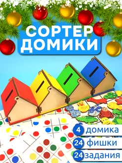 Деревянный сортер Цветные домики для малышей