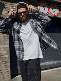 Рубашка в клетку мужская с длинным рукавом
