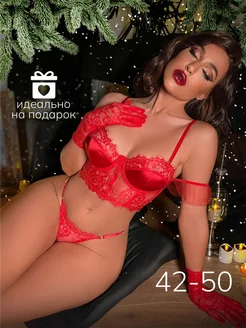 Комплект нижнего белья кружевной с перчатками