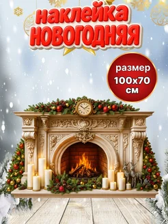 Новогодние наклейки на стену Камин 2026