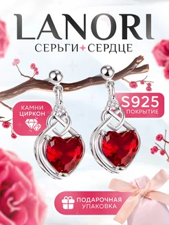 серьги сердечки с камнем