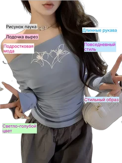 Лонгслив голубой с пауком SIUKH SHOP AMANA