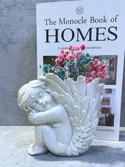 Ваза декоративная для цветов и сухоцветов Ангел из гипса