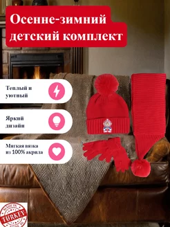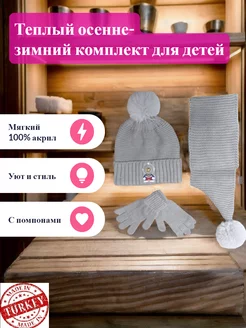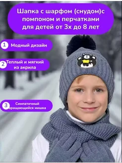 Шапка, шарф и перчатки с игрушкой
