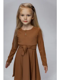 Платье детское с длинными рукавами в рубчик