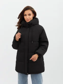 Куртка зимняя с капюшоном удлиненная теплая оверсайз