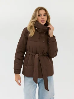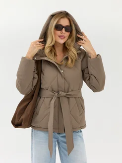 Куртка пальто осенняя стеганая с поясом
