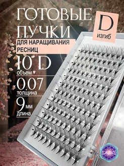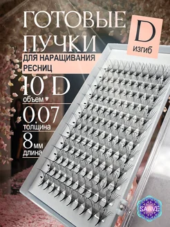 Ресницы для наращивания 10D готовые пучки изгиб D 0,07