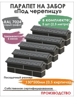 Полимерпесчаный парапет на забор 0,5 кирпича, серый 5шт