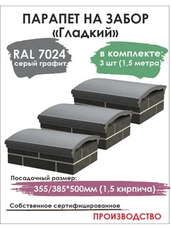 Полимерпесчаный парапет на забор 1,5 кирпича, серый 3шт
