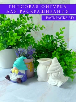 Гипсовая фигурка для раскрашивания - кашпо Гном с мешком