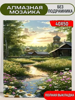 Алмазная мозаика без подрамника 40х50 см Природа и храм