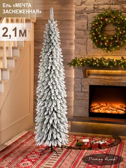 Елка искусственная новогодняя литая заснеженная узкая 210 см