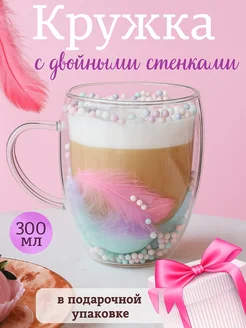 Кружка с двойным стеклом и дном красивая