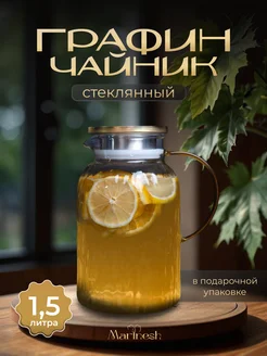 Графин для воды стеклянный с крышкой 1,5 л