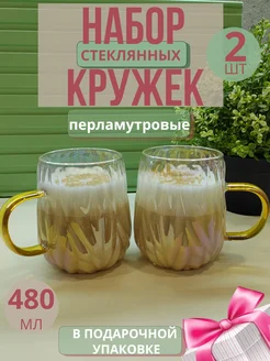 Набор кружек для чая и кофе стеклянные перламутровые 2 шт