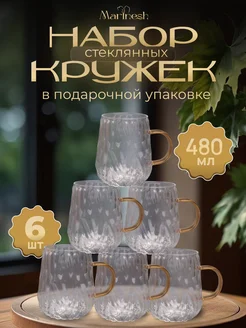 Набор кружек для кофе и чая стеклянные 6 шт