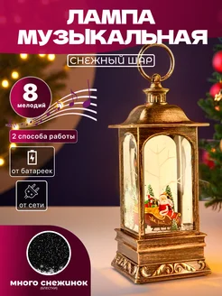 Новогодний фонарь Карета светильник снежный шар со снегом