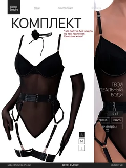 Комплект белья черное боди с поясом и перчатками