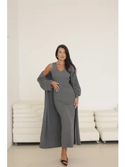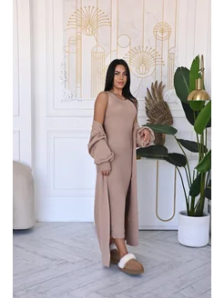 Женский костюм лапша в рубчик трикотажный двойка V-выерз