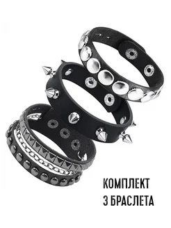 Браслеты кожаные с шипами и заклепками парные 3 штуки y2k
