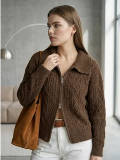 Свитер кардиган вязаный на молнии косы
