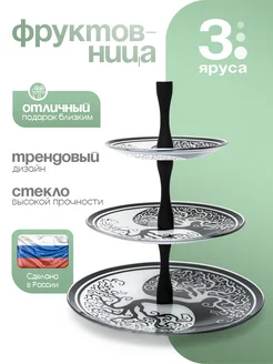 Фруктовница 3-х ярусная с деревянной ножкой