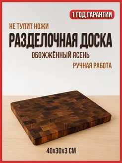 Доска разделочная деревянная торцевая, обожженный дуб, 40х30