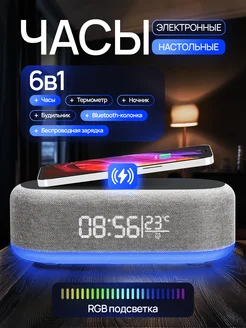 Часы настольные, Bluetooth-колонка, беспроводная зарядка