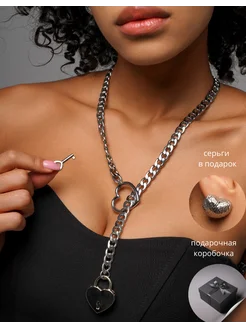 Цепочка на шею-бижутерия-подвеска-сердце-замок-ключ