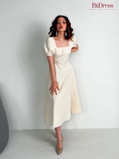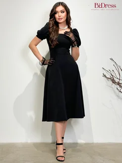 Вечернее платье миди с рукавами фонариками офисное школьное