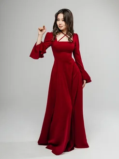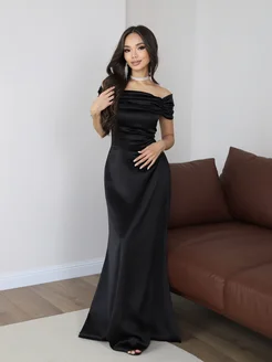 Вечернее шелковое платье в пол с открытыми плечами на бал