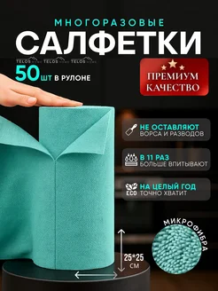 Салфетки для уборки в рулоне. набор 50шт 25х25см
