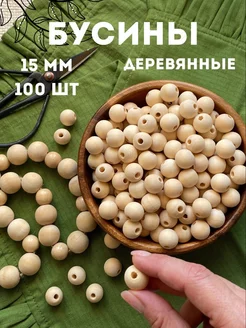 Бусины деревянные 15 мм для рукоделия и творчества